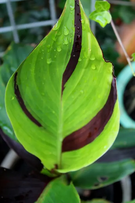 De grote blauwgroene bladeren met rood/bronsgroen zijn erg opvallend, lijken op grote bananenbladeren.