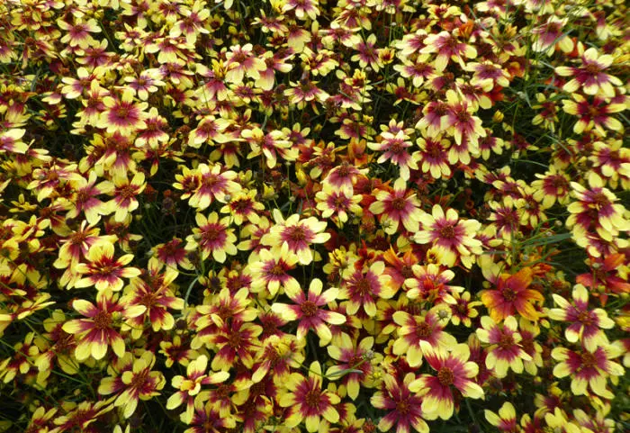 Coreopsis verticillata 'Bengal Tiger' is een compacte, heuvelvormende vaste plant met fijn verdeeld, donkergroen blad.
