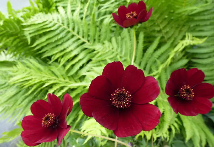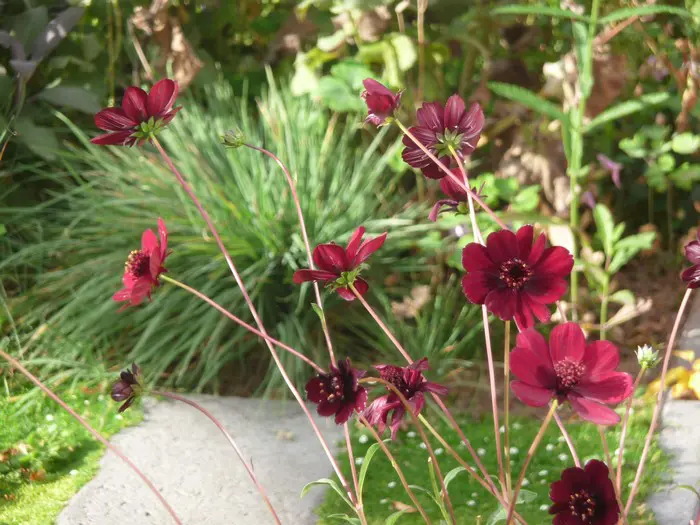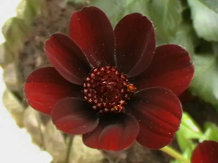 Cosmos atrosanguineus is een knolachtige vaste plant uit Mexico waarvan de bloemen lekker geuren naar chocolade.
