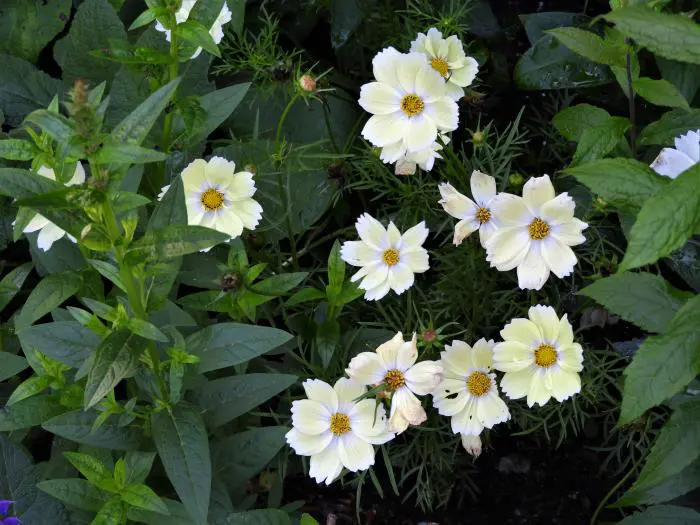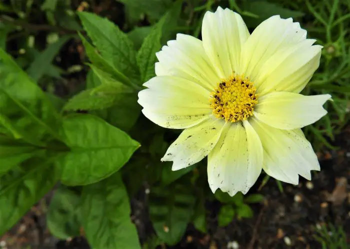 Cosmos bipinnatus 'Xanthos' is een compacte, forse eenjarige plant met zachtgele margrietachtige bloemen en met fijn geveerd frisgroen loof.