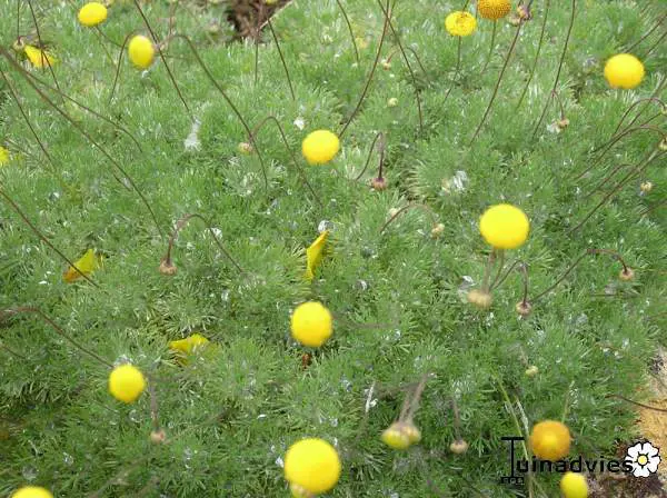 Cotula hispida is een grijsbladige bodembedekker met afstekende gele bloempjes.Ideaal is een zonnige droge en kalkvrije plaatst zoals een rotstuin.