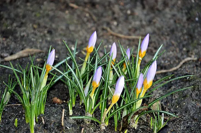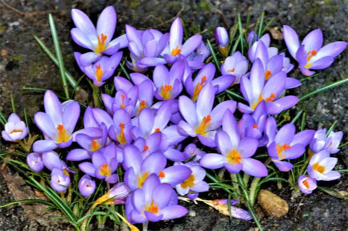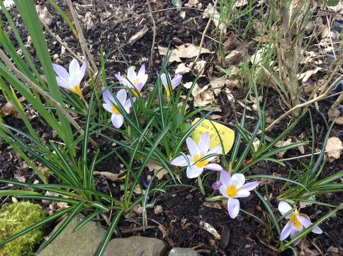 Crocus sieberi . subsp atticus 'Firefly' bloeien lichtpaars met een gele keel.