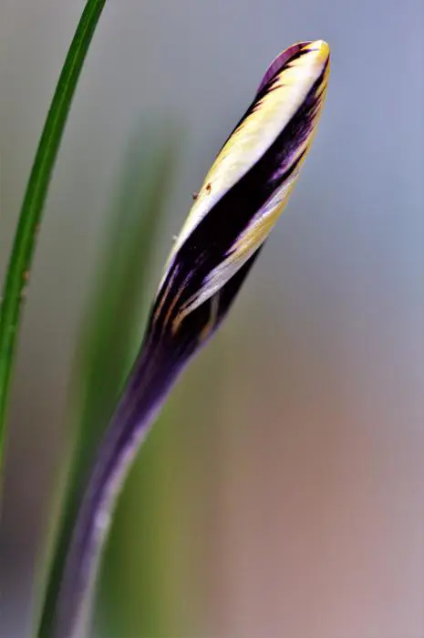 De binnenzijde van de bloem is paars tot donkerpaars, aan de buitenkant geelwit met een dieppaarse vederachtige markering en soms gevlekt.