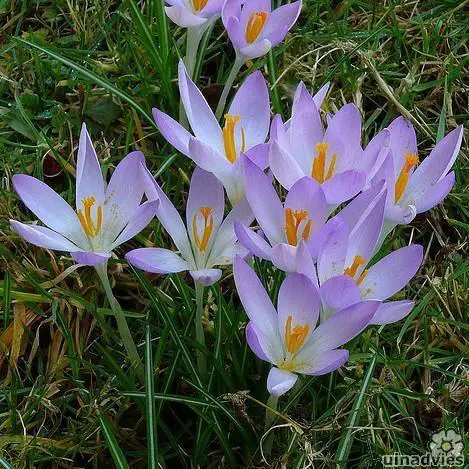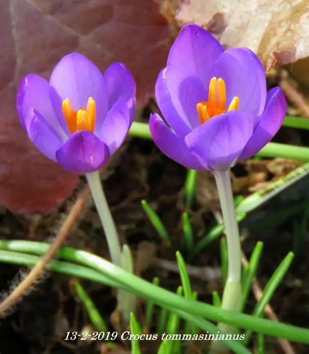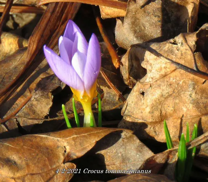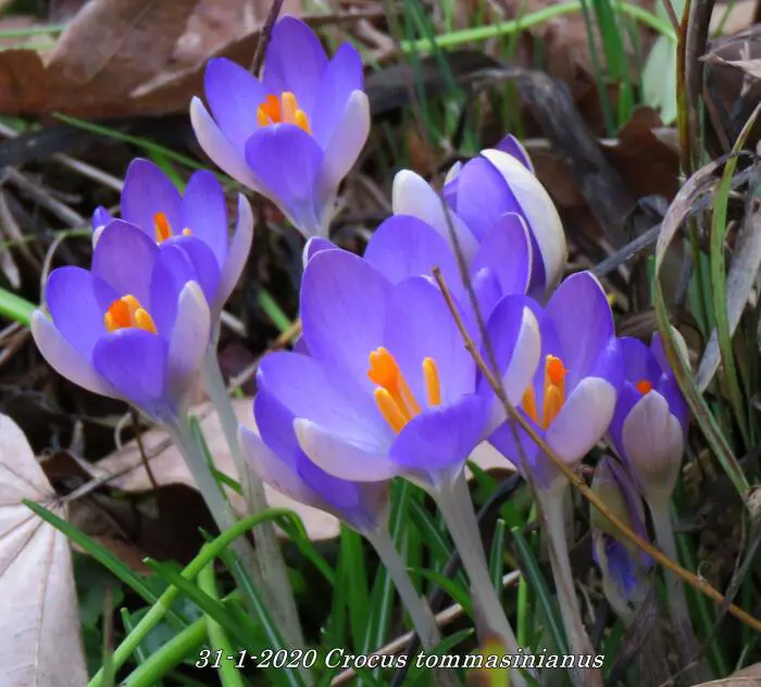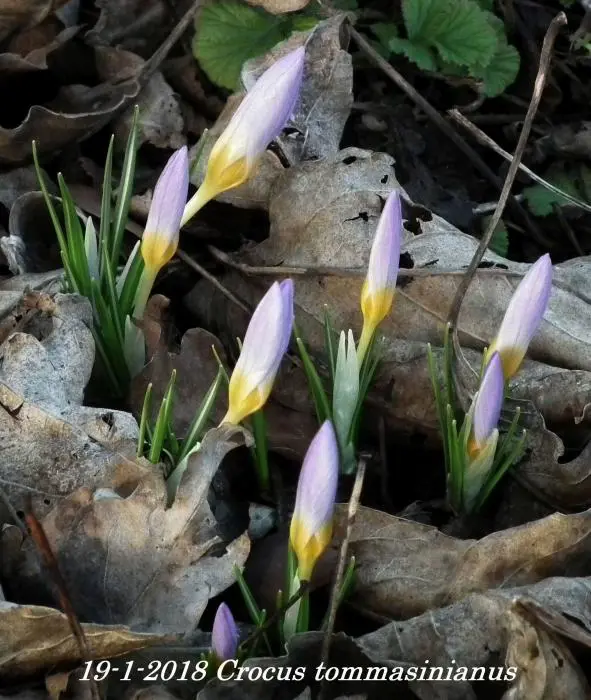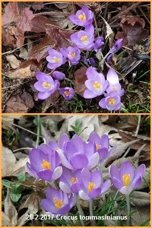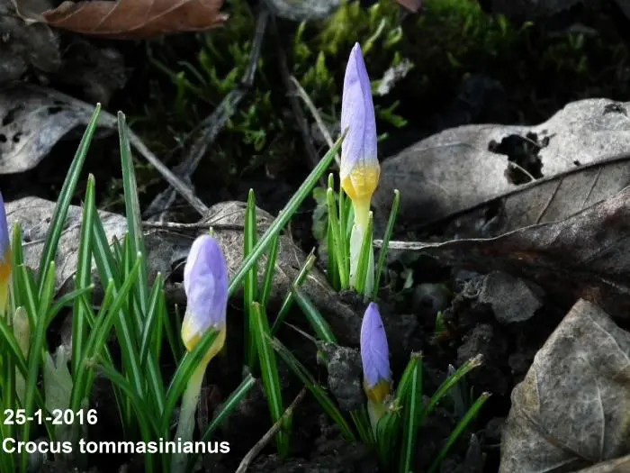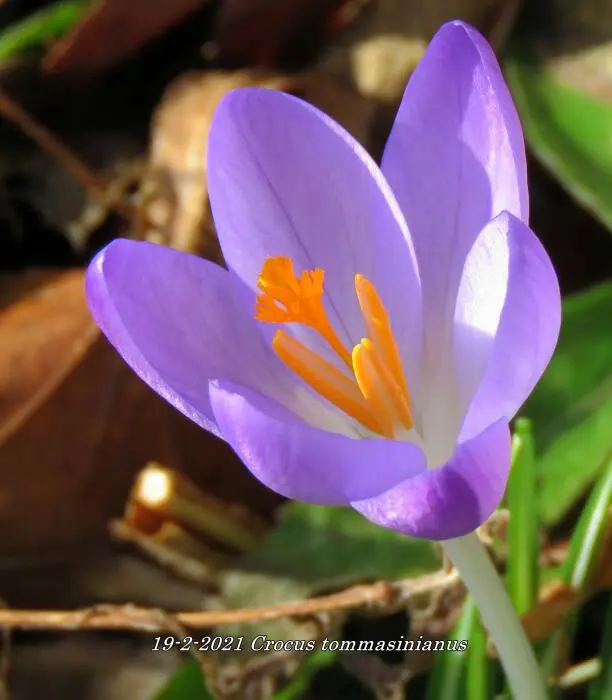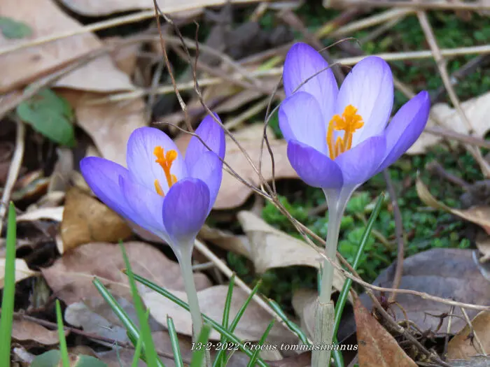 Crocus tommasinianus is een licht paarsblauwe tot lilakleurige botanische krokus met wit in het centrum, nà de bloei het blad laten afsterven.