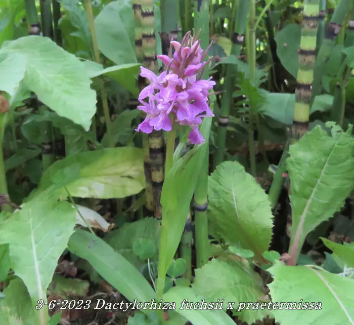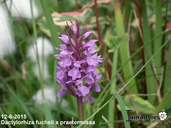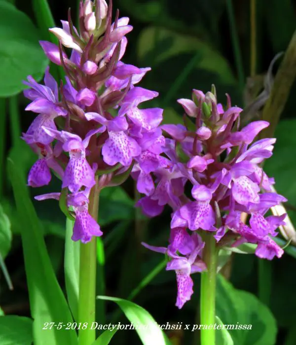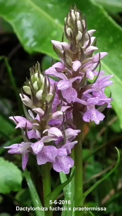 Dactylorhiza fuchsii x praetermissa groeit in het zuiden van Engeland, in moerassen en natte grasvelden.