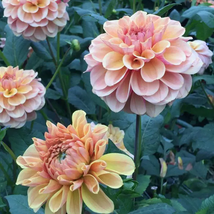 Dahlia 'Blah Blah Blah' is een zeer bloeirijke, decoratieve dahlia met goed gevulde bloemen en brede platte bloemblaadjes.