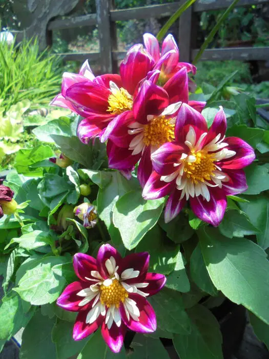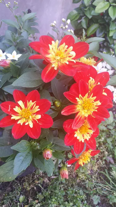 Dahlia 'Goldalia Scarlet' is een halskraagdahlia uit de Goldalia-serie, dit zijn compacte planten van 30cm hoog.