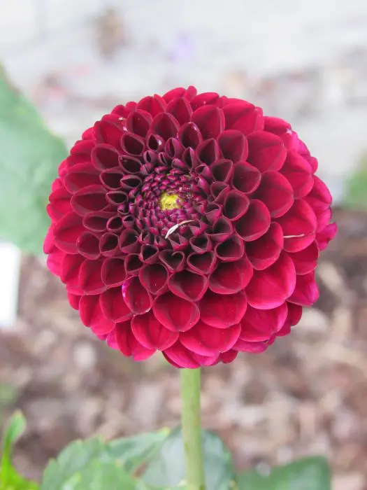Dahlia 'Natal' is een rijkbloeiende pomponbloemige Dahlia met kleine bolvormige donker purperrode bloemen.