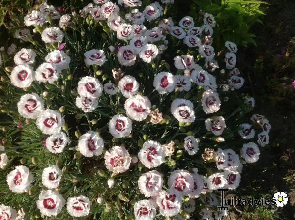 Dianthus 'Coconut Sundae' is een compactgroeiende plant met lineaire blaadjes.
