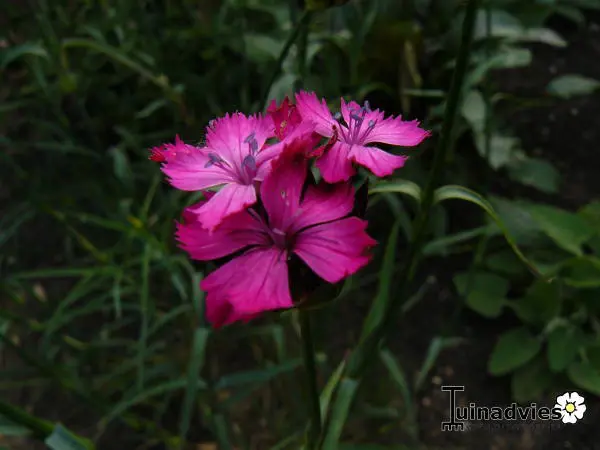Dianthus cruentus afkomstig uit de Balkan, is een rechtopstaande vaste plant met lineaire, blauwgroene bladeren en hoge rechte stelen met dichte trossen van rozerode bloemen.
