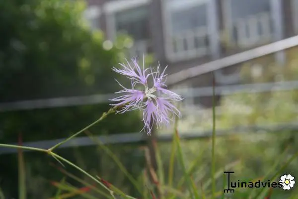 Dianthus superbus heeft wel steun nodig van andere planten om niet om te vallen.