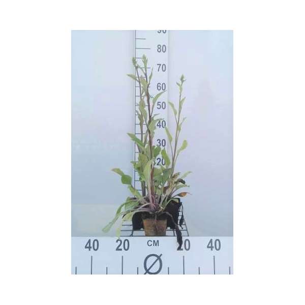 Vormt het eerste jaar een grote rozet (ø45cm) met behaarde, donkergroene, gekartelde, wollig behaarde bladeren.