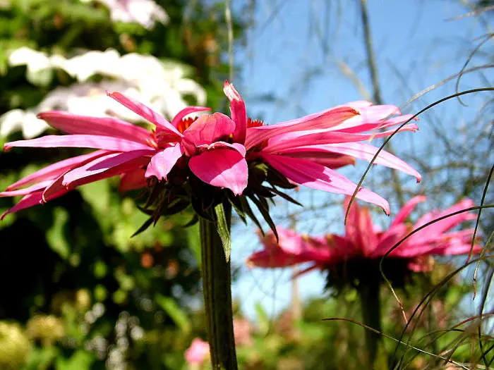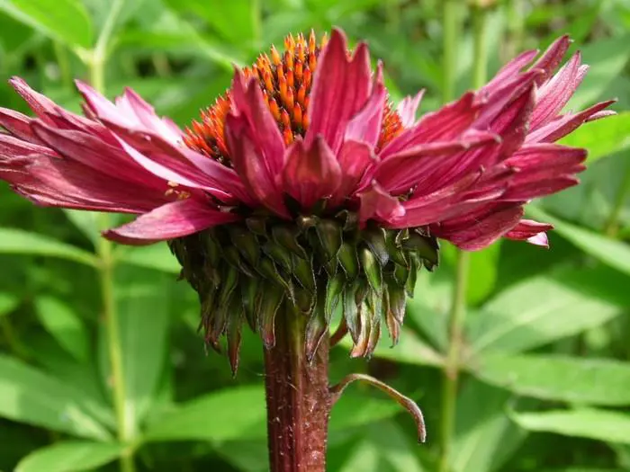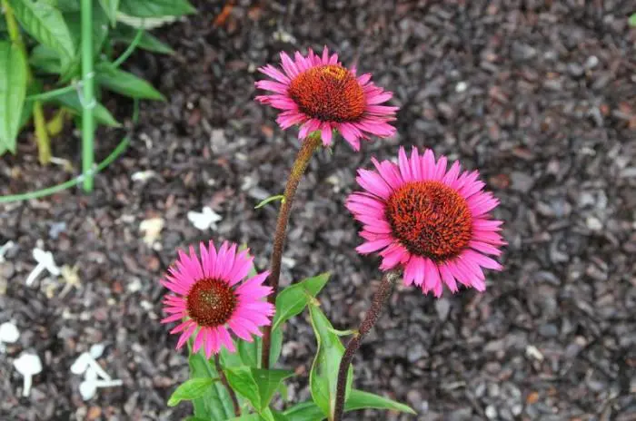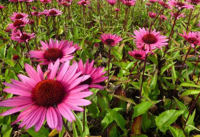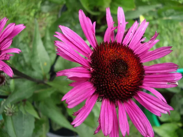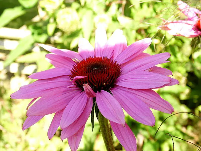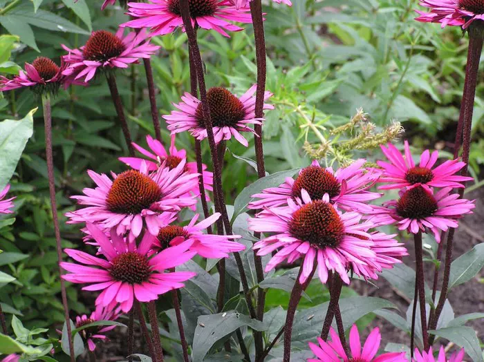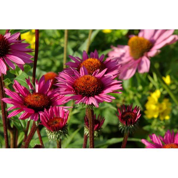 Echinacea purpurea 'Fatal Attraction' is een pracht van een zonnehoed met stevige, bijna zwarte stengels en magentaroze bloemen met een oranjerood hart.