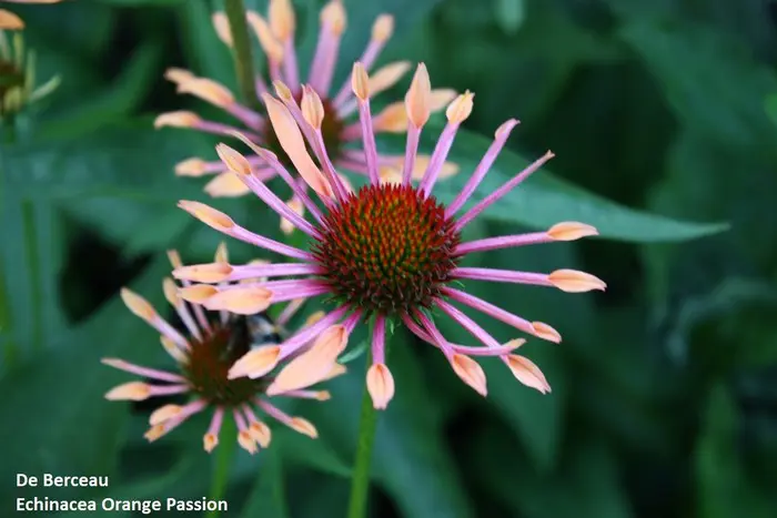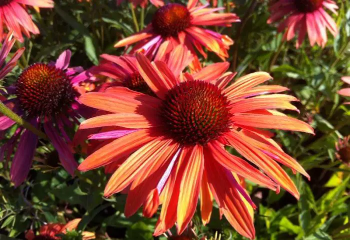Echinacea purpurea 'Orange Passion' bloeit roodoranje met een bruinrood hart.