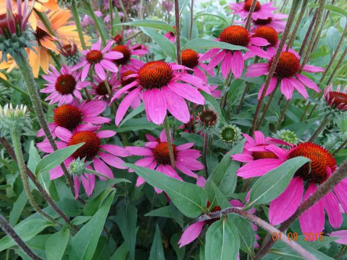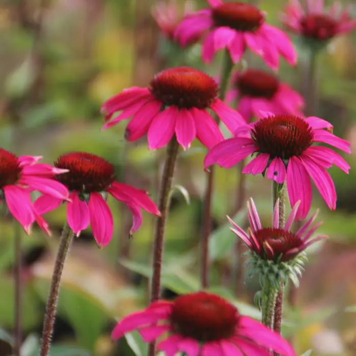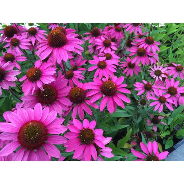 Echinacea purpurea 'Amazing Dream' bloeit rijkelijk met paarsroze bloemen.