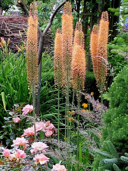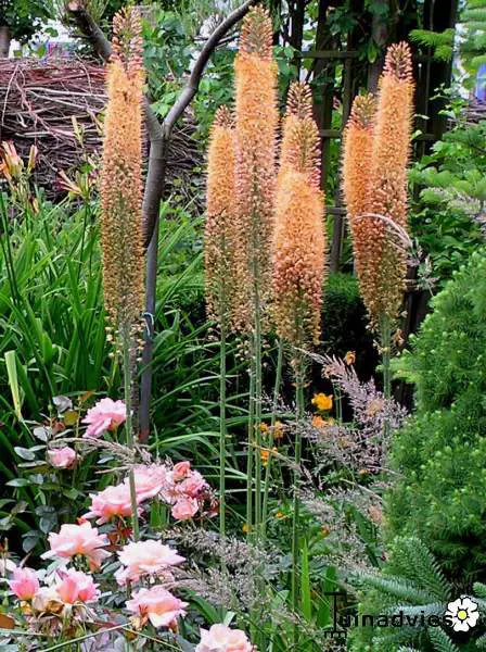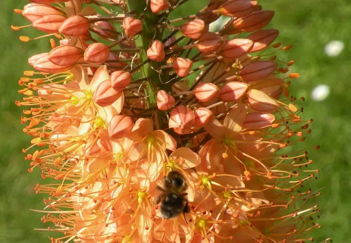 Eremurus x isabellinus 'Cleopatra' is een van de meest spectaculaire planten in de tuin met zijn zeldzame kleur. In juni bloeien ??de 20 tot 50 cm lange aren met honderden kleine, oranjegele , stervormige bloemen met een diameter van 1 tot 2 cm. De bloemaren bloeien van onder naar boven waardoor de plant meerdere weken kan bloeien .