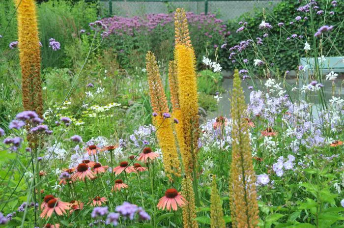 De plant wordt 140/150cm hoog maar de zwaardvormige bladeren blijven lager tot 30cm.