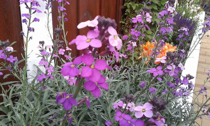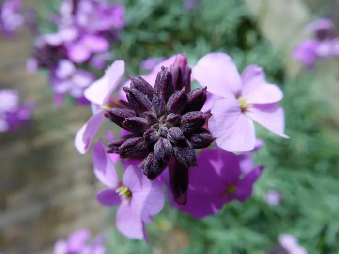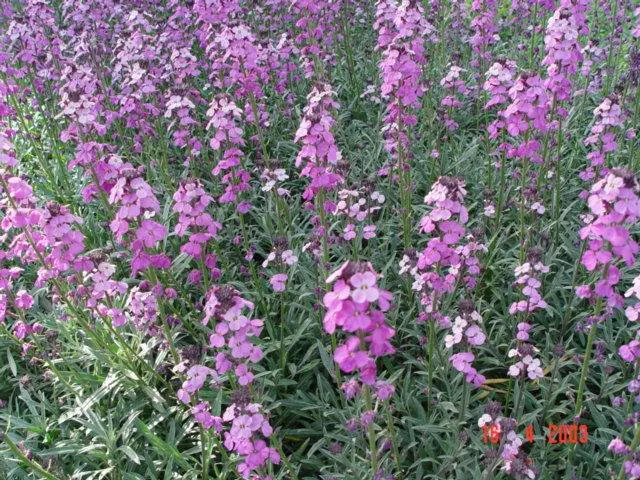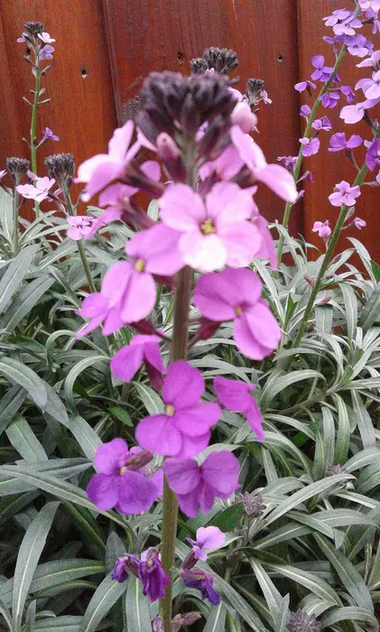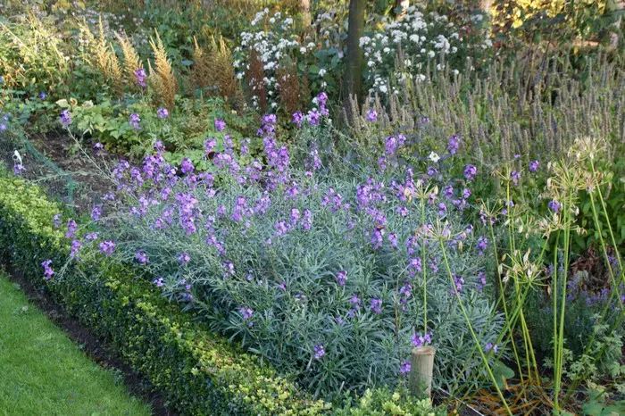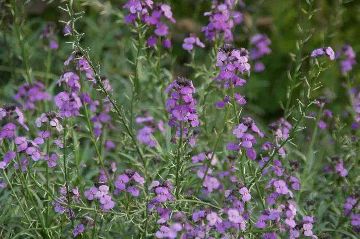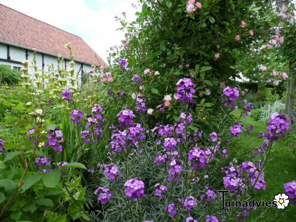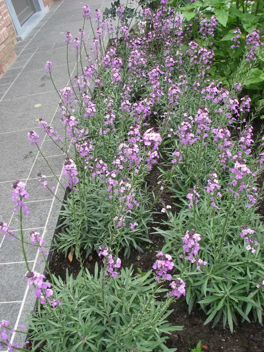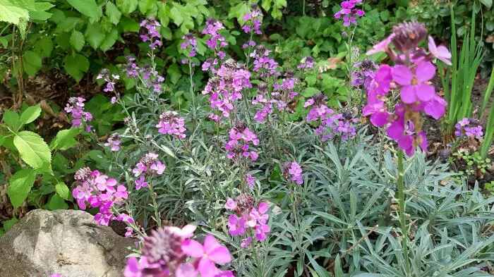 Erysimum 'Bowles Mauve' is een halfheester met grijsgroen blad en blijft de ganse winter aan de plant.