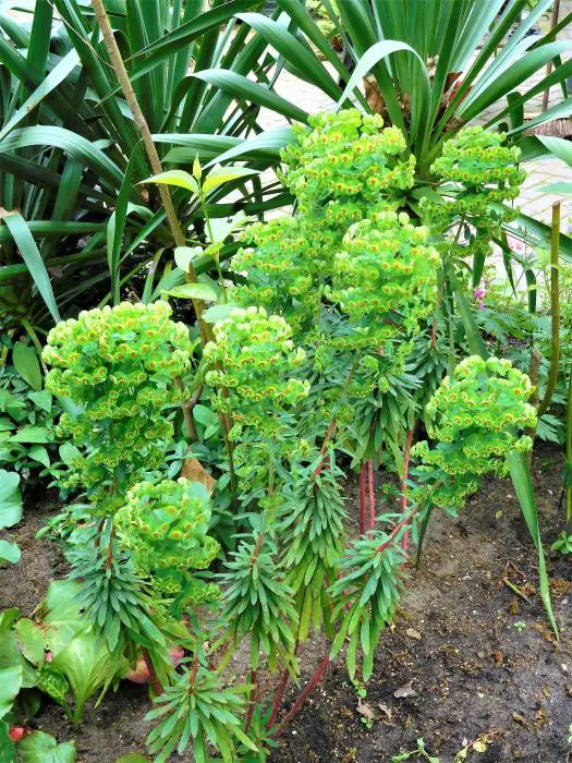 Euphorbia 'Blackbird' is een vaste plant met een compacte bolvorm.
