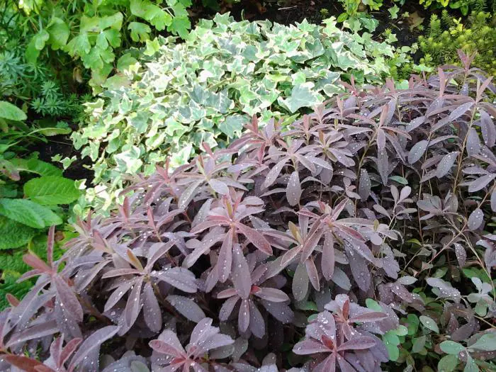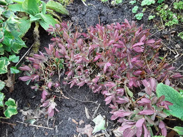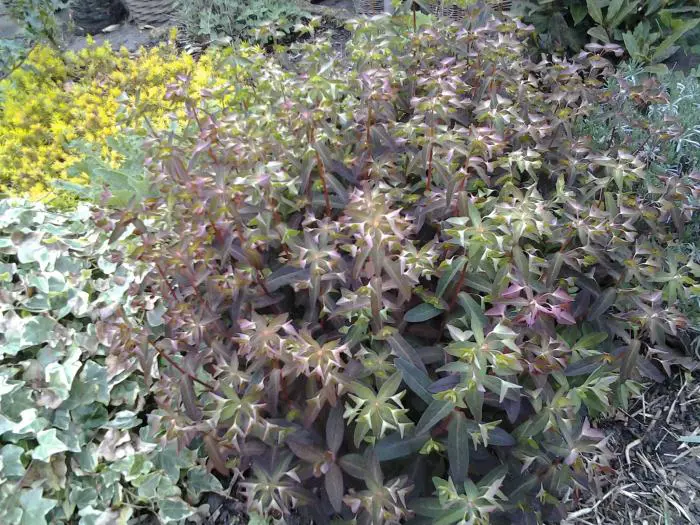 Euphorbia dulcis 'Chameleon' is een kortlevende vaste plant met roodbruine/paarse bladeren.