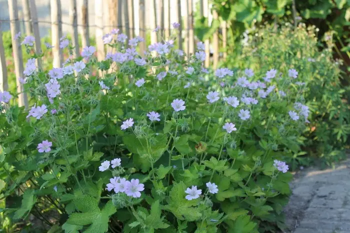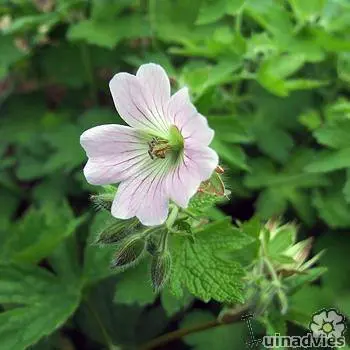 Geranium 'Chantilly' is een polvormende vaste plant met diep gelobde groene bladeren en komvormige,