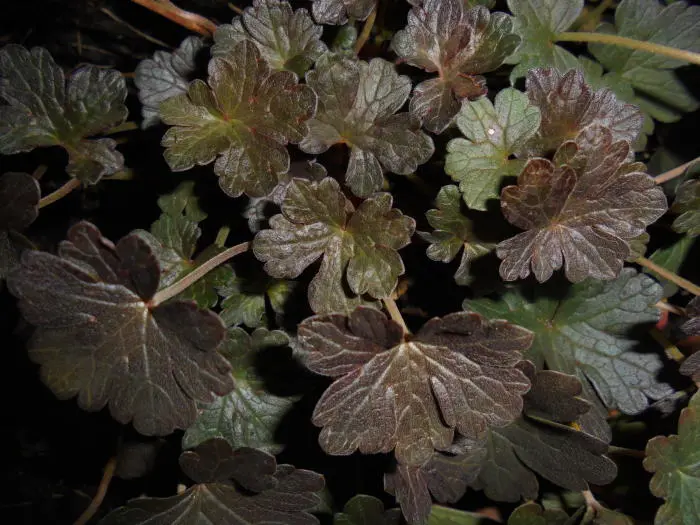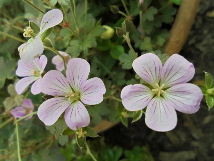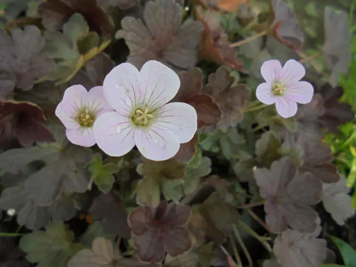 Geranium 'Dusky Crûg' vormt een kleine bodembedekker met compacte groei.