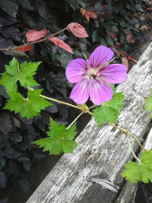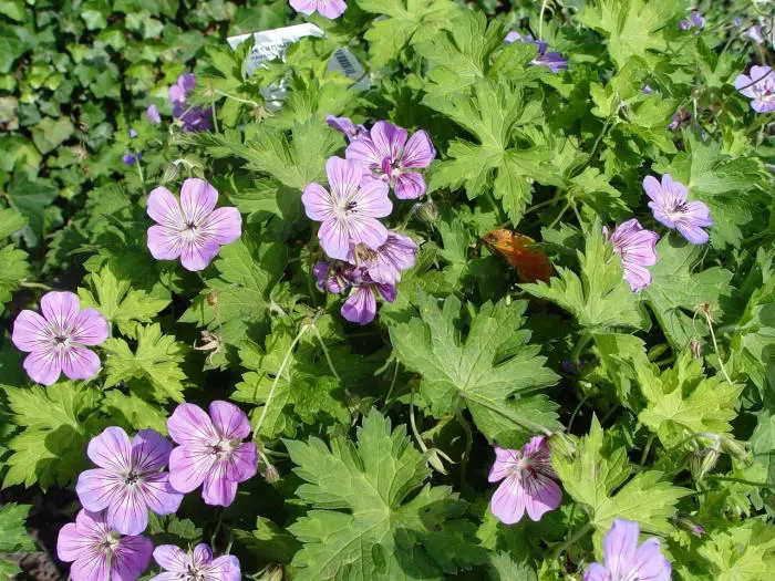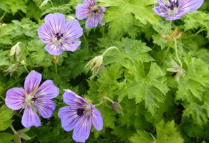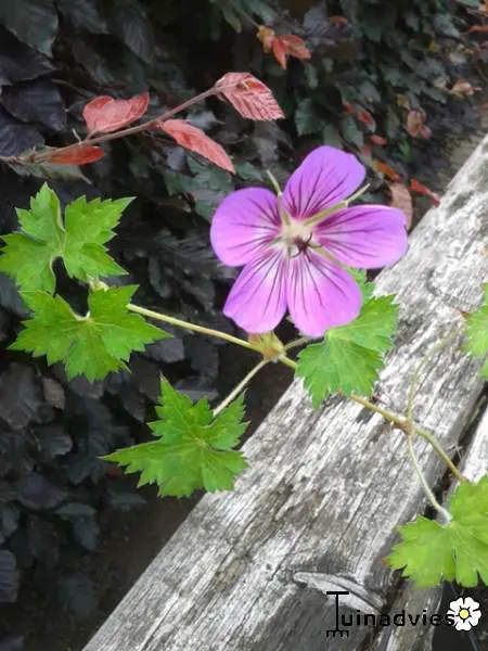 Geranium 'Havana Blues' heeft een lage, spreidende groeiwijze van lange niet wortelende ranken (50cm) en gelobde groene bladeren, brons in het najaar.