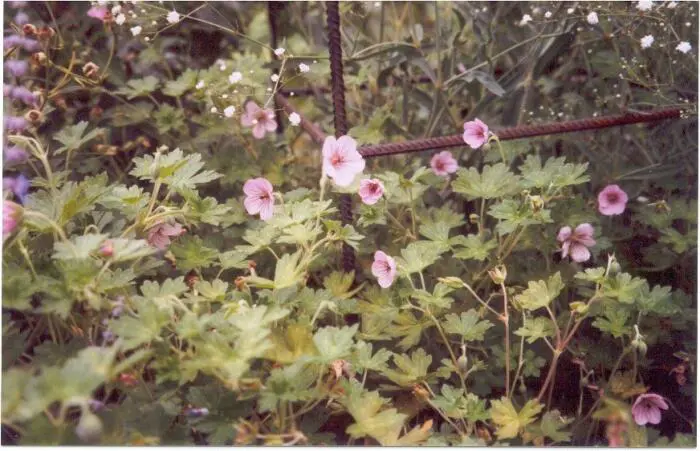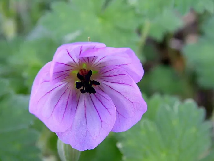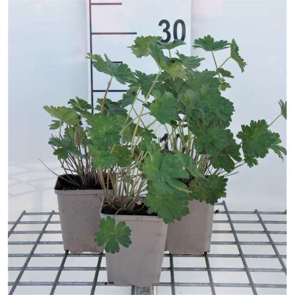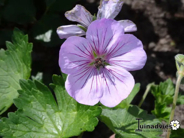 Geranium 'Joy' vormt grote groene bladeren die bij het uitlopen bedekt zijn met een zilverachtige dons.
