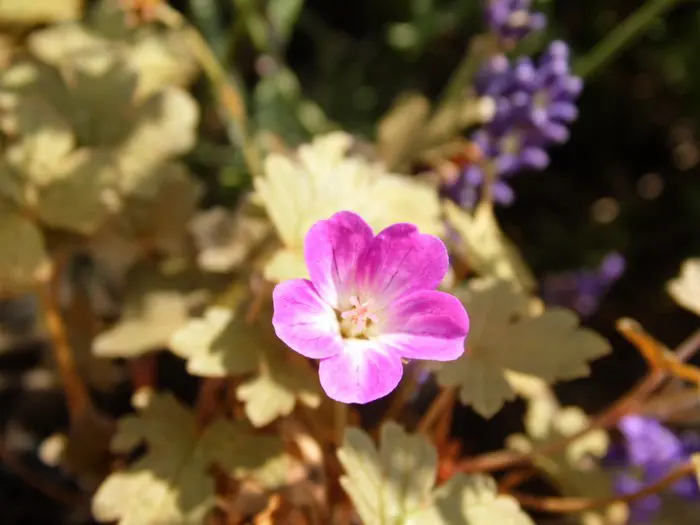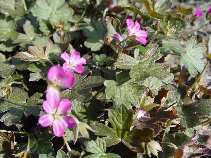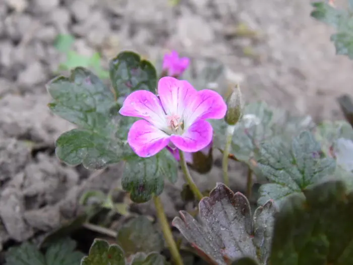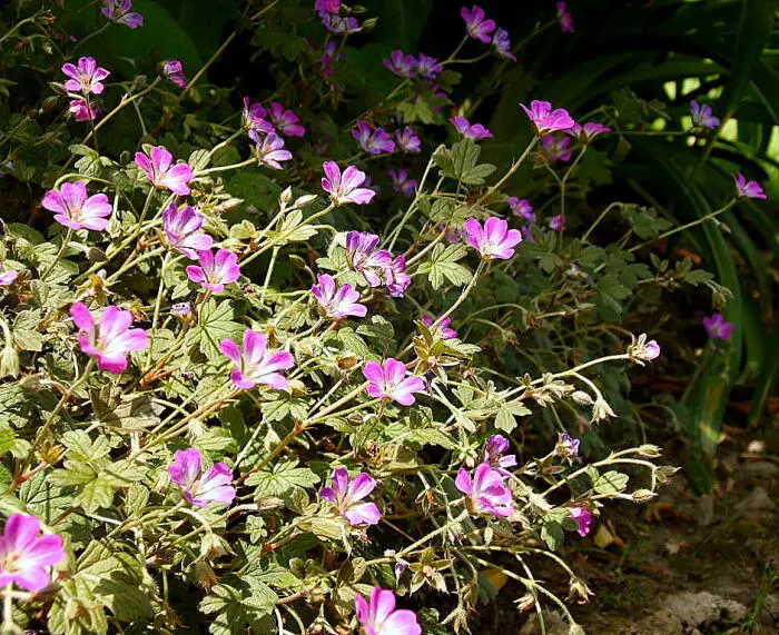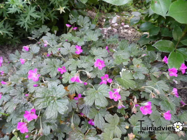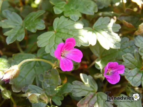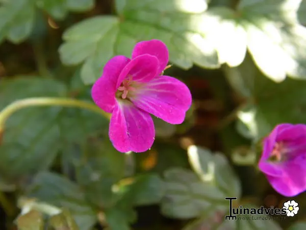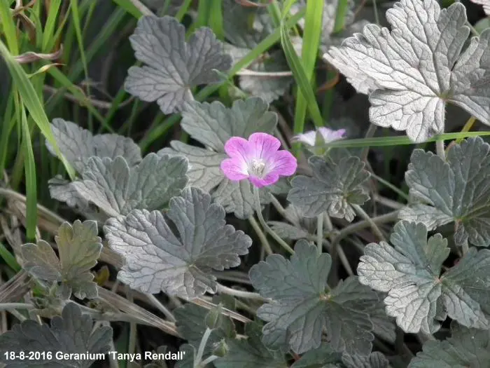 Geranium 'Tanya Rendall' is een erg mooie, kleine geranium met piepkleine bloempjes, roodroze met wit in het hart.