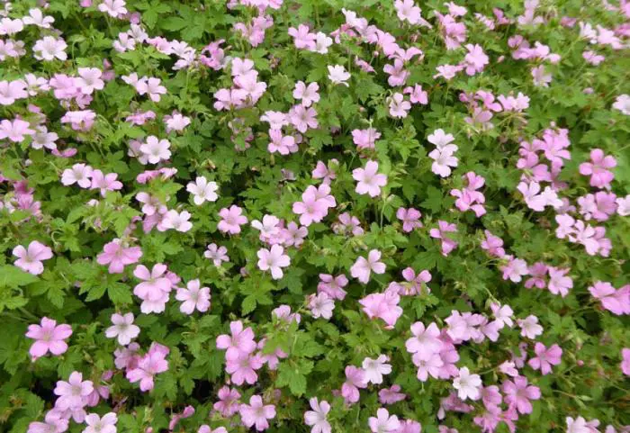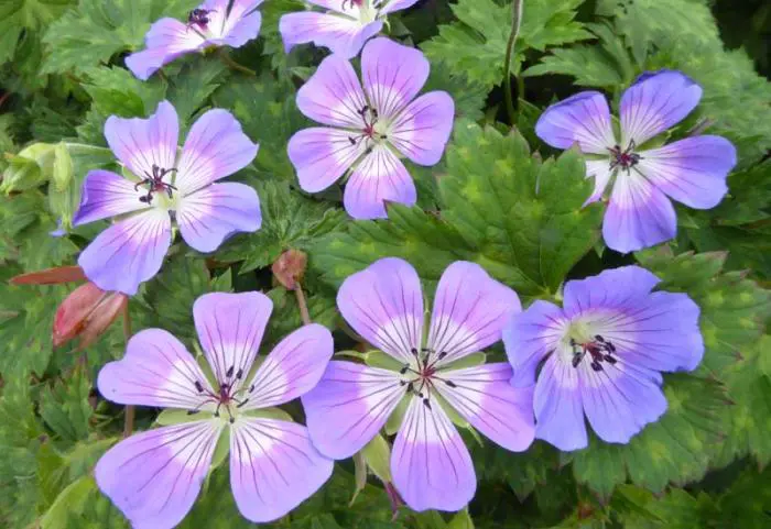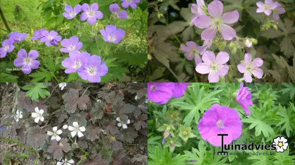Geranium is een vaste plant die in de tuin groeit, niet te verwarren met de Pelargonium die men meestal in bloembakken plant.