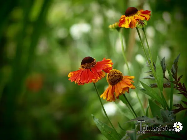 De bloemen bloeien tot de eerste vorst en staan op stevige stengels met lancetvormige, helder frisgroene bladeren.