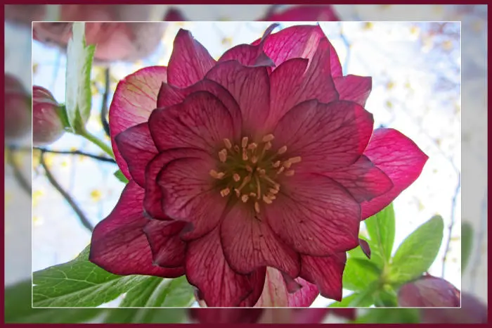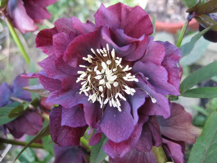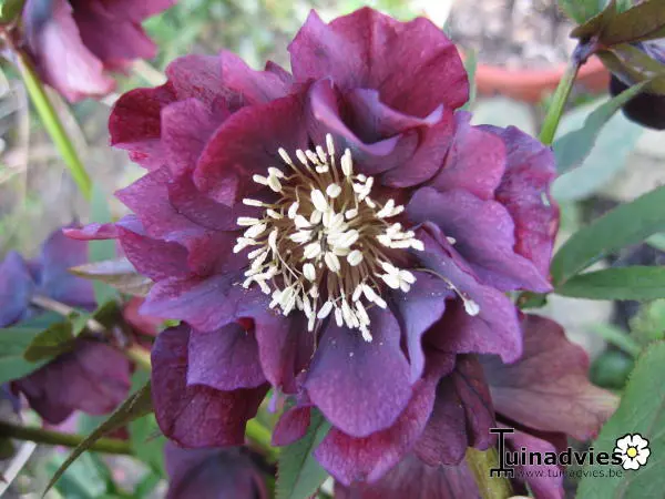 Helleborus orientalis 'Double Ellen' is een selectie met prachtige dubbele bloemen op lange stelen.