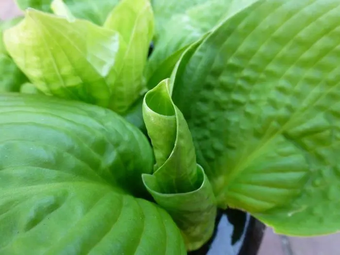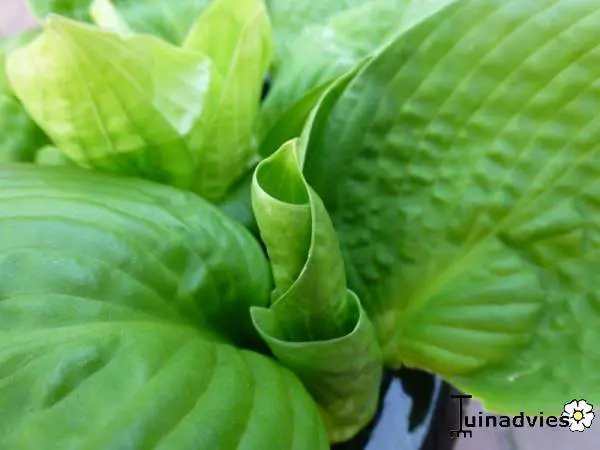 Hosta 'County Park' vormt een krop van ronde groene bladeren met erg korte stelen.