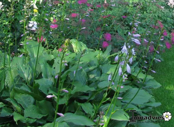 Hosta 'Honeybells' heeft lichtgroene smalle, golvende bladeren.