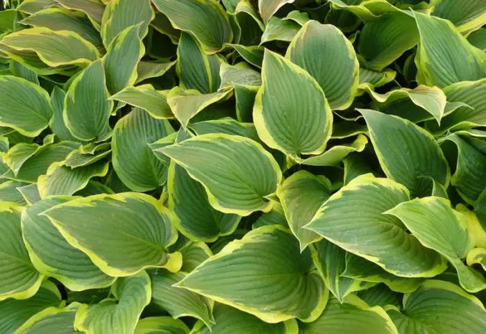 Hosta 'Yellow River' heeft een groen blad met gele rand.