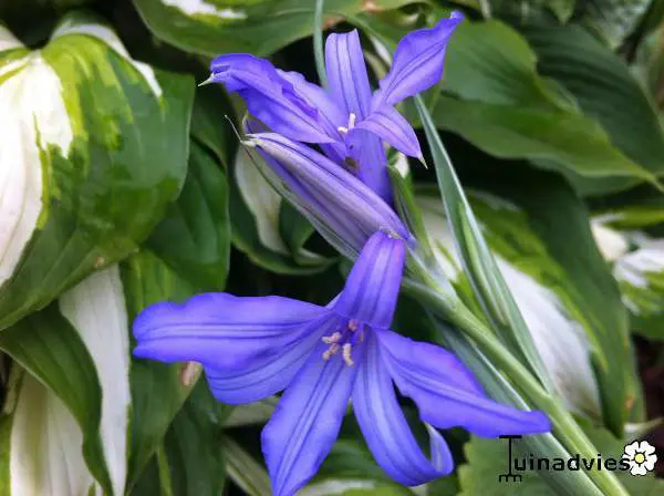 Ixiolirion tataricum heeft blauwe trechterbloemen en grasachtig blad.
