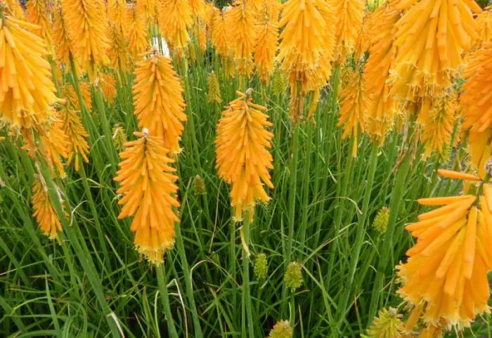 Kniphofia POPSICLE is een serie met een meer compacte groeiwijze, een lange bloeiperiode en een goede herbloei. Bloeien op lange kale bloemstengel met aarvormige bloemtrossen.