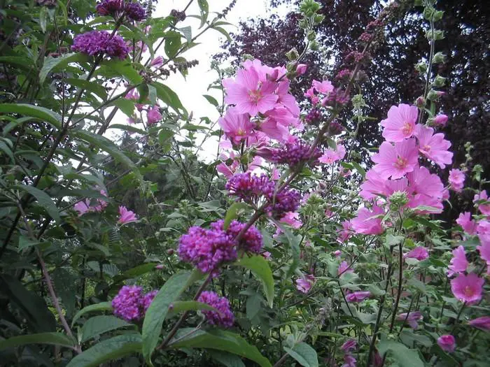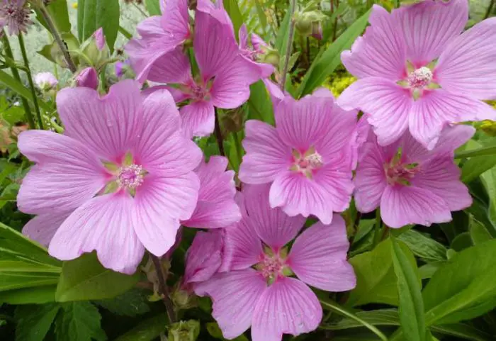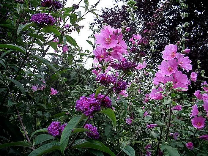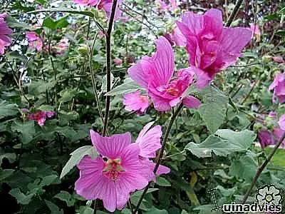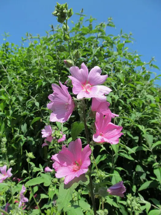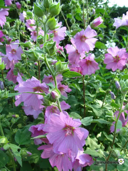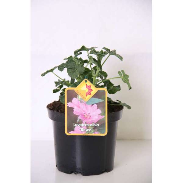 Lavatera 'Rosea' is van Provençaalse oorsprong en vormt een grote struik met een gelobd fluweelachtig groengrijs blad, dat in een mild klimaat aan de plant blijft inde winter.