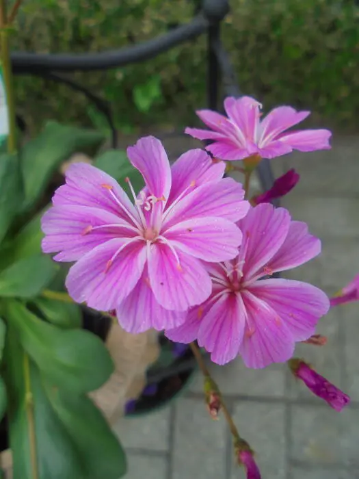 Lewisia cotyledon 'Elise' bloeit met trechtervormige bloemen in een rijke mix van felle kleuren, effen of meerkleurig, roze, zalm, oranje of wit.