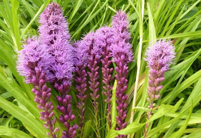 Liatris spicata 'Floristan Violett' zijn mooie stevige planten voor in de border, vooral in grote groepen komen ze goed tot hun recht.