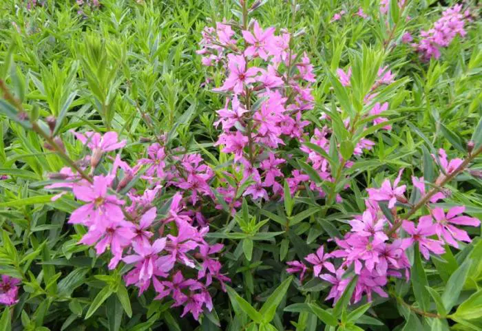Lythrum virgatum 'Rose Queen' is een vaste plant met een opgaande elegante groeiwijze, met houtachtige stengels en smalle wilgachtige bladeren.