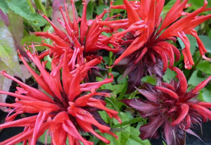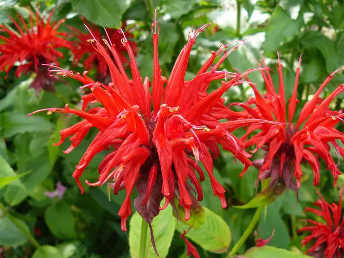 Monarda 'Jacob Cline' heeft grotere bloemen op lange stelen.