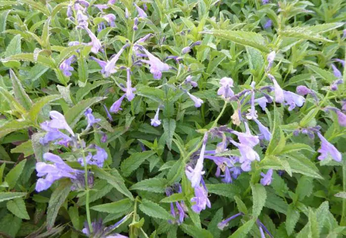 Nepeta sibirica 'Souvenir d'André Chaudron' lijkt een beetje op de Penstemon met zijn prachtige buisvormige bloemen aan rechtopgaande stengels. De bloemen zijn blauwgrijs-paars..