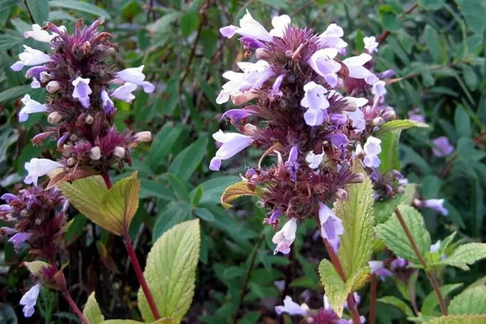 Nepeta subsessilis is een bossige rechtopgaande struik met mooie donkergroene bladeren maar ruiken onprettig bij aanraking.