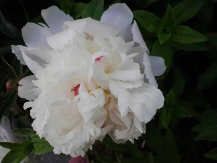 Paeonia officinalis 'Alba Plena' is een bekende tuinvorm met goed gevulde komvormige witte bloemen.