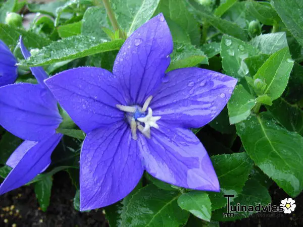 Platycodon grandiflorus 'Astra Blue' is een compact blijvende cultivar. Bloeit de hele zomer met ballonvormige bloemknoppen die openbloeien met stervormige blauwe bloemen en die aan klokjesbloemen (Campanula) doen denken.