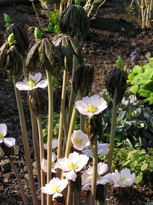 opvallende bladeren , de bloemen geuren onaangenaam, nà de bloei in september/oktober verschijnen eetbare vruchten
