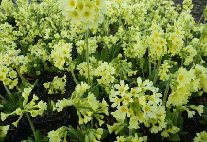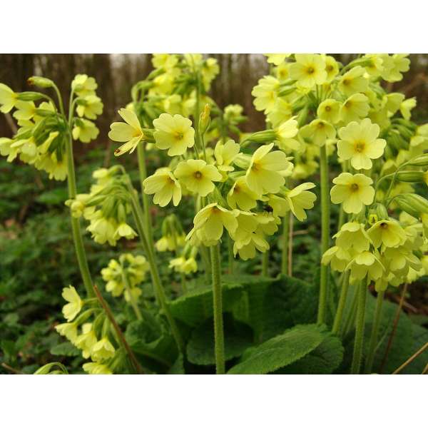 De zwavelgele bloemen geuren lichtjes en hangen aan één kant in trosjes.