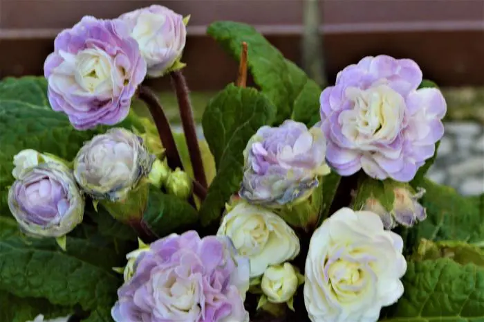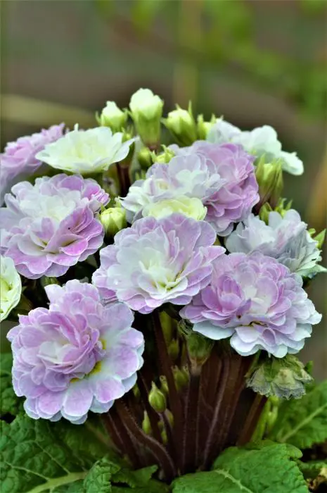 Primula vulgaris BELARINA is een serie met compacte langbloeiende sleutelbloemen waarvan de dubbele bloemen op roosjes lijken.