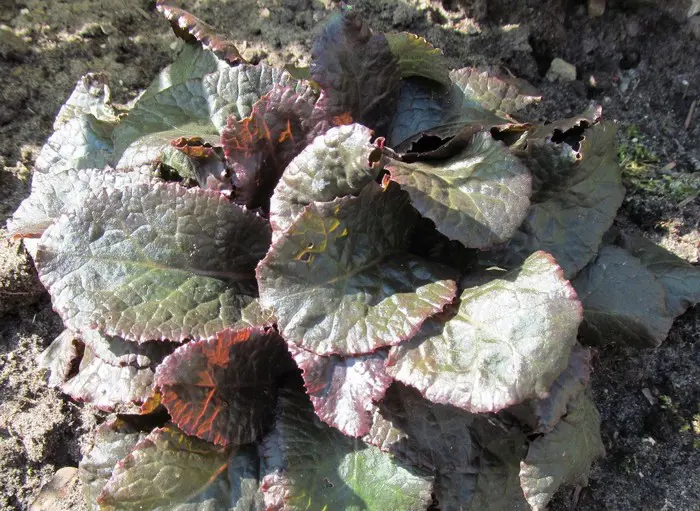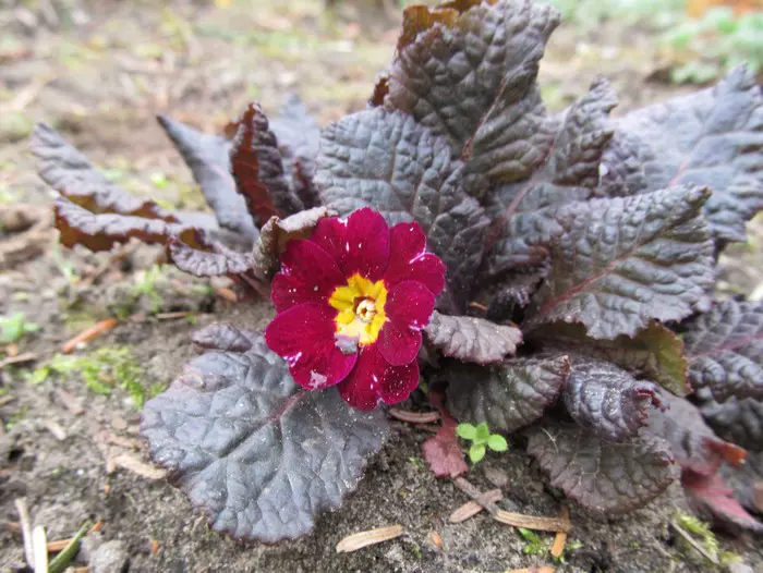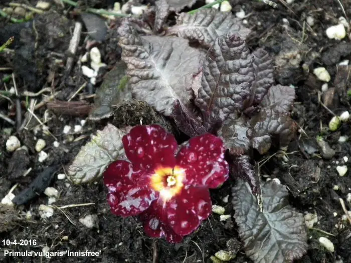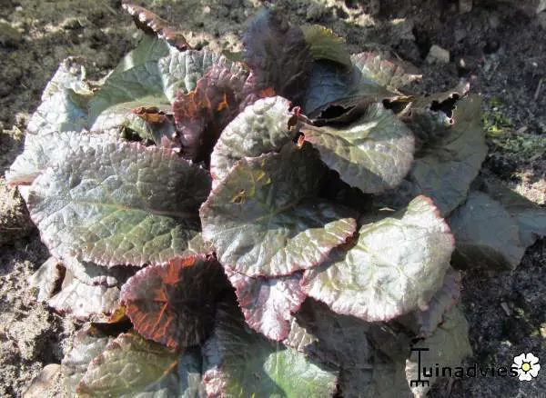 Bloeit karmozijnrood maar heeft een paarsachtig bronskleurig blad.